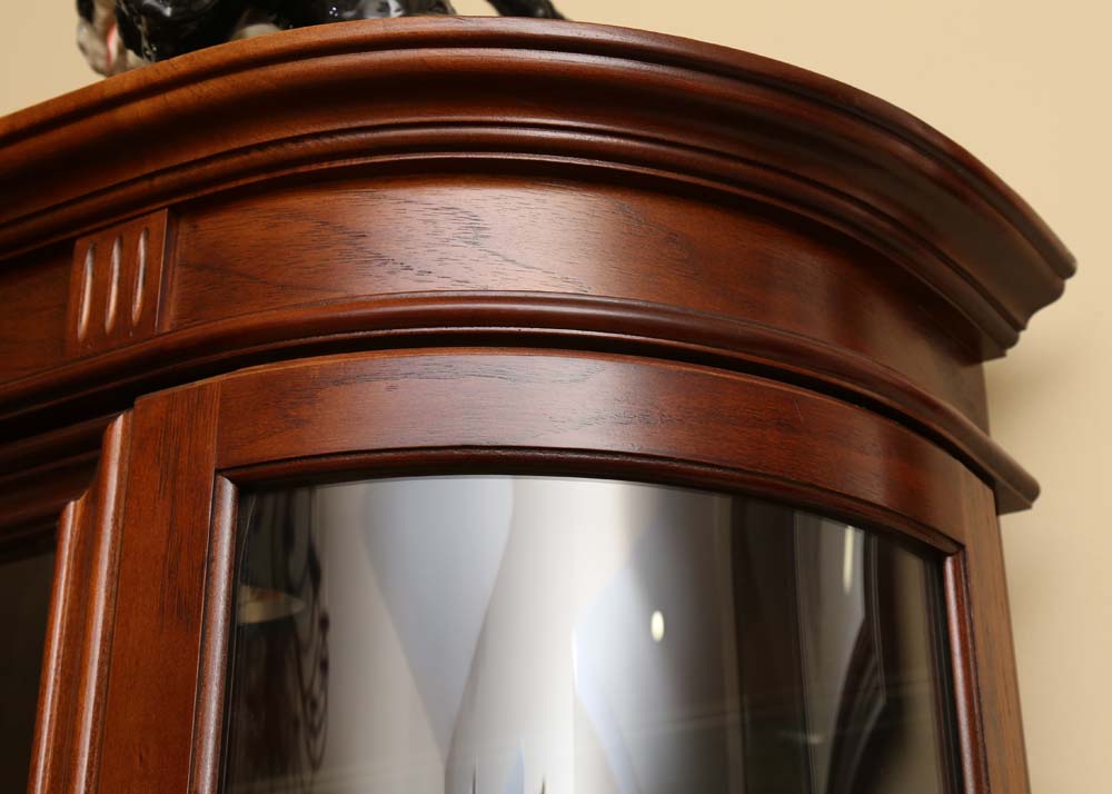Models with a backed mirror and integrated lighting help emphasize every detail of your prized possessions. Two wooden platforms with a mirrored back reflect every detail. This 6 tiered curio cabinet in a dark cherry finish also features a mirrored back and canned lighting at the top to perfectly illuminate your valuables. Enjoy free shipping and discounts on select orders. Philip reinisch oak corner curio cabinet lighted display mirrored back.